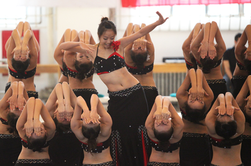 交流表演中我院体育艺术系表演的集体舞“女儿花”