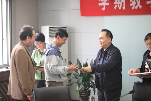 在会议上,教务处刘新民处长首先介绍了新聘任的七位教学督导专家,其中,刘新民兼任教学督导组组长,雷志平教授为副组长,其他五位成员分别为:程致屏教授、王君侠教授、惠国俭教授、代三育教授和张德强副教授,以上专家聘期均为一年。杜书记为各位专家颁发了聘任证书。