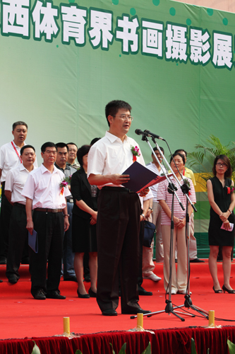 日前,为配合陕西省第14届运动会,弘扬体育文化精神,省体育总会在全省体育系统征集体育书画、摄影作品,在省体育场国际展览中心举办了“陕万象城育界书画摄影展览”。陕西省副省长郑小明、省体育局局长王建军等出席开幕仪式。