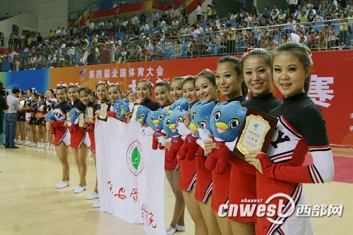 第四届全国体育大会啦啦操比赛日前在安徽合肥落幕。此次代表陕西省参赛的我院啦啦队在众多高水平参赛队伍中脱颖而出,获得舞蹈啦啦操项目亚军。颁奖典礼后,我院啦啦队与其他获奖队伍一起,为合肥观众奉献了精彩的表演。