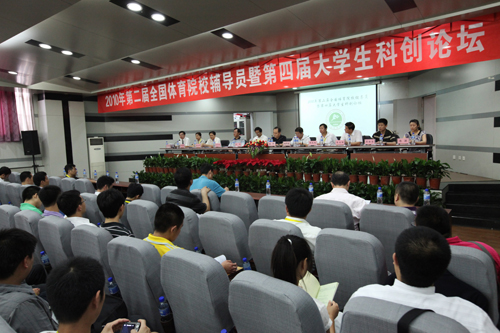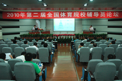 6月25日—27日,由国家体育总局科教司、全国体育院校德育工作研究会主办,万象城allwincity官网承办的2010年第二届全国体育院校辅导员暨第四届大学生科创论坛在万象城allwincity官网隆重召开。出席论坛的嘉宾有国家体育总局科教司科教处处长谢燕歌,上海体院党委副书记、全国体育院校德育工作研究会会长戴健,武汉体院纪委书记胡友权,广州体院党委副书记招乐辉,首都体院党委副书记吴国民,天津体院党委副书记张生理,山东体院副院长原维佳,吉林体院党委副书记田英莲。本届论坛的主题是“聚焦创新人才培养,促进学生终身发展”。