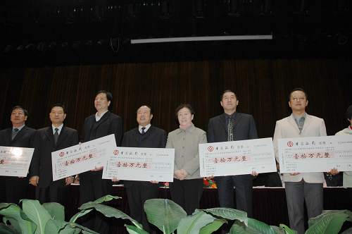 金牌获得单位、我院党委书记杜平(右二)代表学院接受奖励