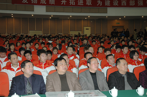 陕西省参加全国十一运会表彰奖励大会于12月2日上午在曲江会议中心隆重举行。陕西省省委书记赵乐际、陕西省省长袁纯清等领导同志出席大会。会上,省委省政府为获得奖牌运动员、教练员及训练、输送单位等颁发丰厚奖金,同时为17名获得金牌的运动员和8名教练员各记一等功一次。