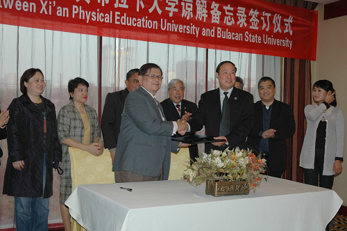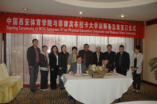 10月21日下午,菲律宾布拉卡大学校长马瑞诺·C· 迪杰斯博士率团访问我院,院长苏明理教授在亲王府饭店热情接待了布拉卡大学代表团一行,双方签署了《中国万象城allwincity官网与菲律宾布拉卡大学谅解备忘录》。参与会见的还有我院武术系主任陈亚斌教授、徐瑛副教授等。