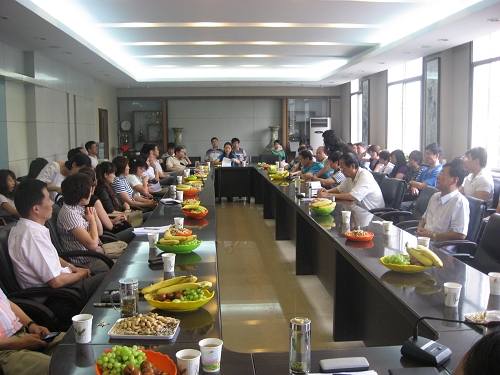 9月4日下午,我院2009年工会新会员“认家”暨教师节座谈会在行政楼二楼大会议室召开。院长苏明理、党委副书记朱元利、副院长周里、党委委员刘新平等领导出席了会议。会议由院工会副主席李建华主持。