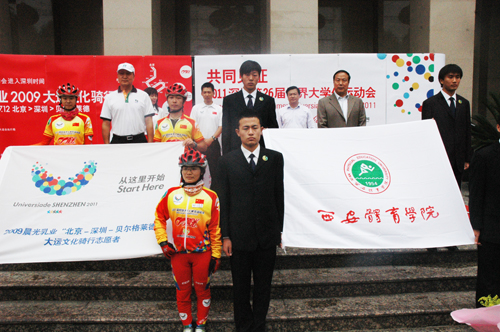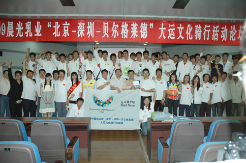 “北京―深圳―贝尔格莱德”2009世界大学生夏季运动会文化骑行队抵达我院