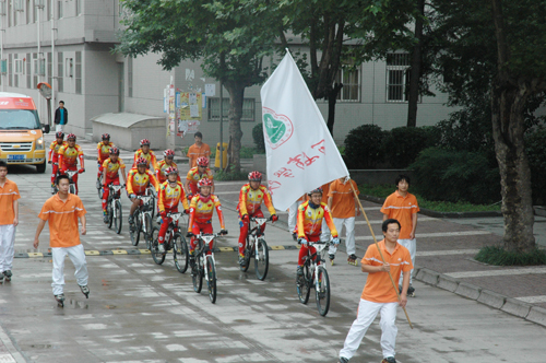 据悉,2011年8月,第26届世界大学生运动会将在深圳举行。来自全国部分高校的12名青年志愿者组成的大运骑迹车队5月16日从北京奥林匹克公园庆典广场出发,骑行国内14个省、直辖市,途经20多所国内著名高校,行程5500公里,历时50天,我院是本次骑行活动的第六站。