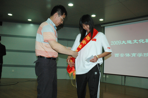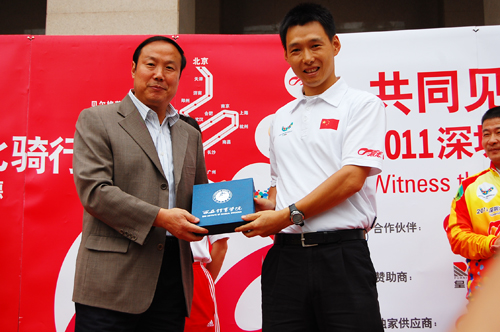 2009大运文化骑行活动总领队林明伟与我院院长苏明理互赠礼物