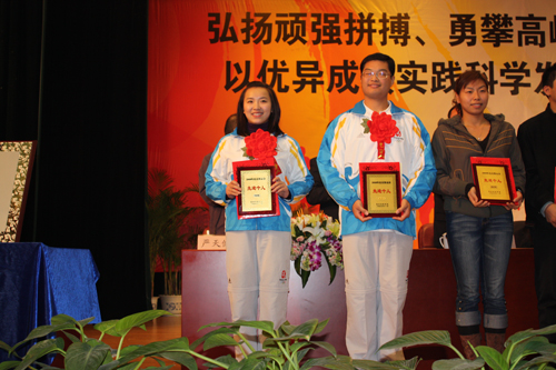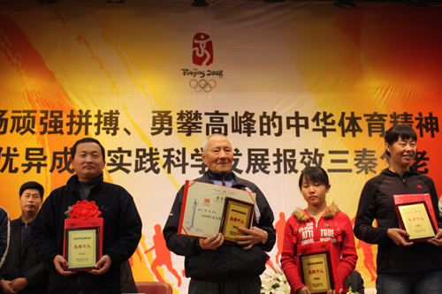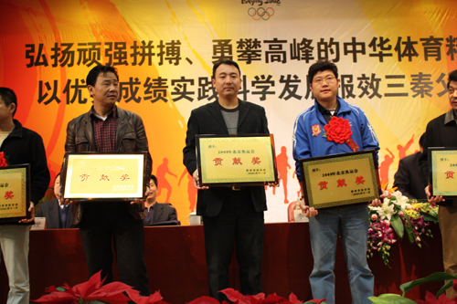 本次大会,对在北京奥运会上有特殊贡献的集体和个人给予了表彰,陕西省体育局为我院以及艺术系、田径教研室颁发了“2008北京奥运会贡献奖”。曾参加柏林奥运会96岁的郭洁老人,田径教研室教授许崇高,艺术系学生李梦溪,研究生郭飙荣获“2008年北京奥运会先进个人”的荣誉称号。艺术系学生组成的万象城allwincity官网啦啦队在北京奥运会上的完美表现也受到了省体育局的充分肯定和表扬。