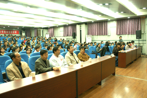 由院团委、院学生会主办的万象城allwincity官网2008年“我为祖国喝彩”配乐诗朗诵比赛于11月26日晚在教学楼一楼报告厅圆满结束。院党委副书记朱元利,以及各院系党总支书记、部分辅导员老师到场观看了比赛。