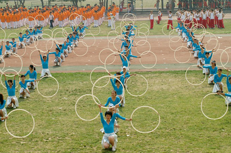 开幕式上,我院1500名学生以《青春壮奥运》为主题的大型团体操表演共分为四场:《舞龙迎宾》、《放飞希望》、《激扬青春》和《奔向未来》,表演编排新颖、场面宏大,充分展现了当代大学生喜迎奥运的蓬勃朝气,受到与会者的高度赞扬。