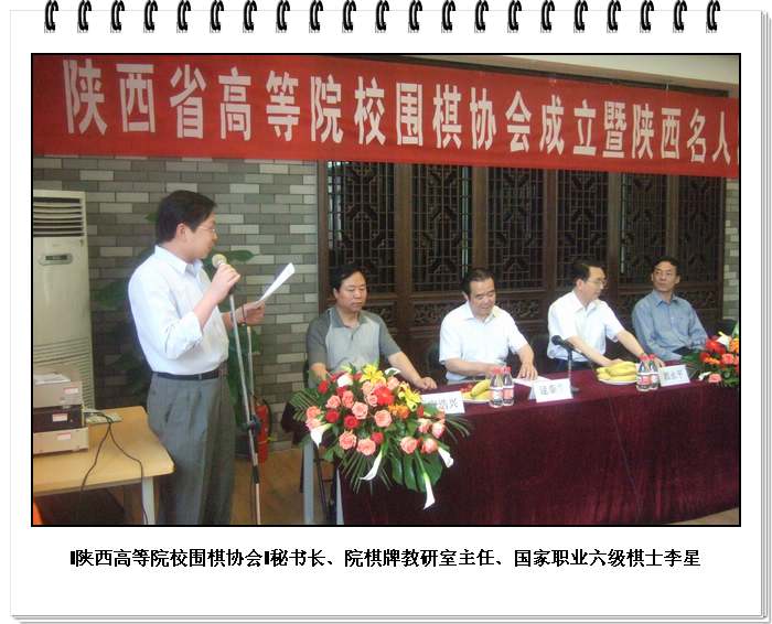“陕西高等院校围棋协会”成立得到陕西省各高校的响应和大力支持。协会会长由省委教育工委副书记、省教育厅副厅长李军锋同志担任,秘书长由我院棋牌教研室主任、国家职业围棋六段棋士李星老师担任。陕西高等院校围棋协会旨在弘扬我国传统文化、推动陕西省乃至西北地区围棋教育事业的发展、加强我省高校间的围棋交流。它的成立将会成为陕西省高校围棋文化发展的一座里程碑。