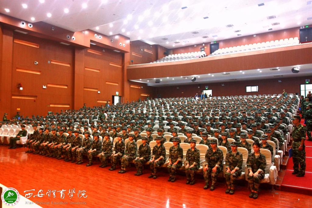 在神圣庄严的国歌声中,军训动员大会拉开了帷幕。朱元利、文立新分别为校本部和沣峪校区军训团授旗;陈彦、文立新分别作军训动员讲话;党政办主任张朝阳、宣传部部长高月宏分别宣读了我院2017级学生军训工作领导小组成员名单;学工部部长王志刚、保卫处处长雷振华分别宣读了军训纪律。