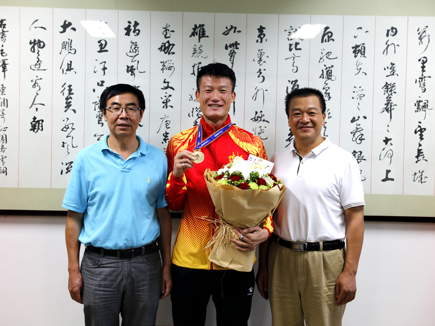 9月14日,院长朱元利、副院长陈彦、足球学院负责人朱军、竞训处处长张鹏华在行政楼二楼会议室迎接李晨光载誉归来并举行座谈。