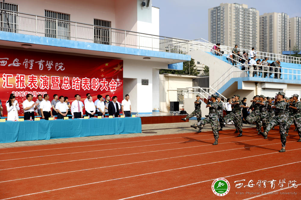 表演结束后,会上对先进连队、先进个人、优秀指导员和优秀教官进行表彰。党委书记吴长龄为承训部队白鹿原学生军训基地赠送锦旗。