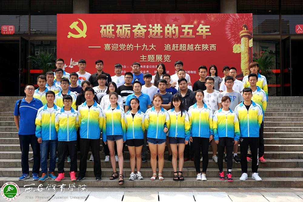 本网讯 9月17日,正在陕西历史博物馆展出的大型主题展览《砥砺奋进的五年——喜迎党的十九大 追赶超越在陕西》迎来第五个展日。我院组织体育教育系和运动训练系的师生代表参观了展览。