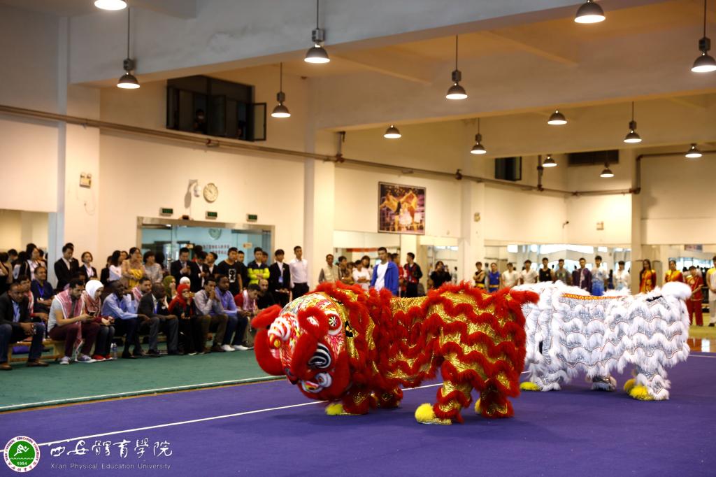 欢迎仪式结束后,亚非青年代表团参观了我院校史馆,对于我院建校历史及陕万象城育文化历史有了更为深刻的了解。随后代表团观看了我院武术系学子带来的舞龙舞狮和武术套路表演,并与我院学子进行了一场乒乓球比赛。中午时分,我院后勤集团清真餐厅用精心准备的自助餐让代表团成员用筷子体会了不一样的陕西美食。