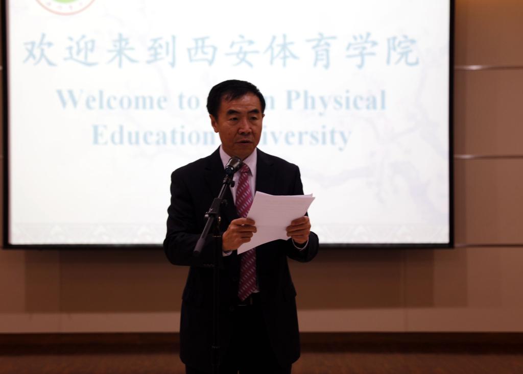 朱元利代表学院对亚非青年表示热烈欢迎,并向代表团介绍了学院概况,他表示,青年和体育是天生密不可分的孪生体,我院坚持“笃学重教、造就人才、服务体育、福佑人民”的办学宗旨,经过几代人的不懈努力和历史积淀,形成了“诚厚简朴、勤奋刻苦、团结拼搏、求实创新、爱国荣校”的办学传统与特色。他希望陕西崇文厚德、包容开放的人文精神能够给青年代表团留下美好印象。