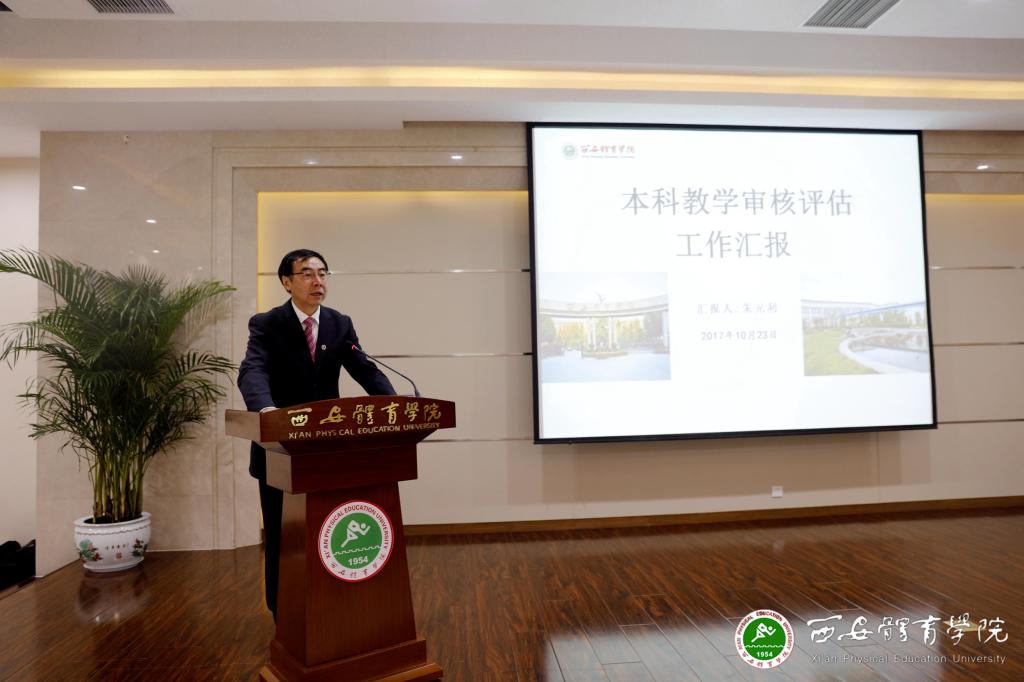 院长朱元利从学院简况、本科教学工作基本思路和主要措施、存在问题及努力方向等三个方面向专家组作了汇报。他介绍指出,学院在六十三载的发展过程中,传承优良办学传统和奥运精神、“万象城精神”,紧密结合经济社会发展新趋势,确立了明晰的发展目标和办学定位,坚持“以体为本”,拓展挖掘传统优势体育专业内涵,实施专业课程“专、精、深”改革,提升师资队伍建设水平,提升教育教学质量,创新实践教学环节,为国家培养了众多的优秀体育人才。与此同时,学院也清醒地认识到,在以提升质量为核心的内涵式发展道路上还任重道远,本科教学工作依然存在着一些短板和不足,学校高水平师资队伍建设需要持续加强,办学条件有待进一步改善,系部在人才培养工作中的主体地位需要进一步落实,教育国际化水平有待提升。他表示,学院将全力配合专家组的工作,全面、真实、充分地展示学院建设状态,虚心听取专家的意见和建议,真诚期待各位专家为学院全面体检、把脉会诊,指导学院进一步提高办学治校和人才培养水平。