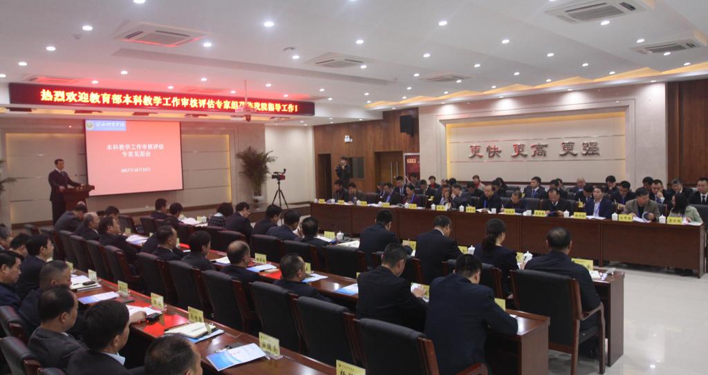 本网讯 10月23日,教育部本科教学工作审核评估专家组进驻我院,由北京体育大学原党委书记杨桦担任组长,首都体育学院副校长骆秉全担任副组长,中国民航大学副书记于剑、湖北美术学院副校长刘茂平、黑龙江省教育评估院院长景丽英、河南省教育评估中心副主任张新民、华东师范大学体育与健康学院院长季浏、上海交通大学体育系主任陈作松、西南交通大学心理研究咨询中心主任宁维卫担任组员,榆林学院蔺根荣、西北工业大学支希哲担任秘书,中国西部高等教育评估中心李珍艳担任项目管理员的12人专家组将在我院开展为期四天的本科教学工作审核评估。本次审核评估的第三方机构领导由西北评估中心副主任徐菲担任。陕西省教育厅副厅长、省高等教育局副局长王紫贵,省体育局副局长徐鹏,我院党委书记吴长龄,院长朱元利及其他院领导出席了专家见面会。全院正处级以上干部、正高职称教师、学术委员会委员等参加了见面会,会议由副院长陈彦主持。
