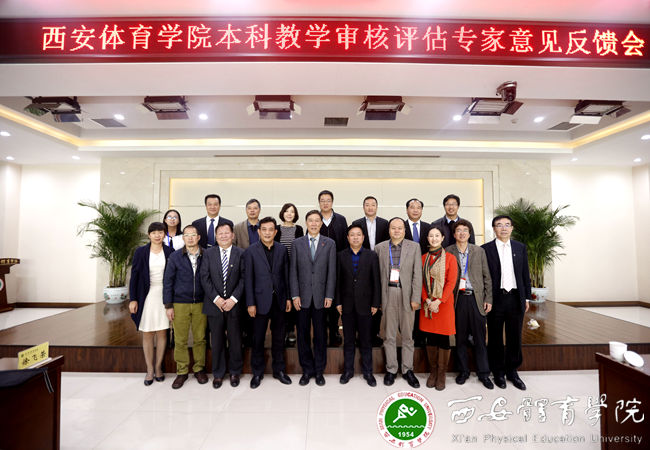 本网讯 10月26日下午,我院本科教学工作审核评估专家意见反馈会在新网球馆六楼报告厅召开。教育部审核评估专家组杨桦、骆秉全、于剑、刘茂平、景丽英、张新民、季浏、陈作松、宁维卫,陕西省教育厅副厅长、省高等教育局副局长王紫贵,省体育局副局长徐鹏,省教育厅高教处长胡海宁,西部评估中心副主任徐菲,我院党委书记吴长龄、院长朱元利及其他院领导出席了反馈会。全院正处级以上干部、正高职称教师、学术委员会委员、教学指导委员会委员、学位委员会委员共119人参加了会议。反馈会由专家组副组长骆秉全主持。