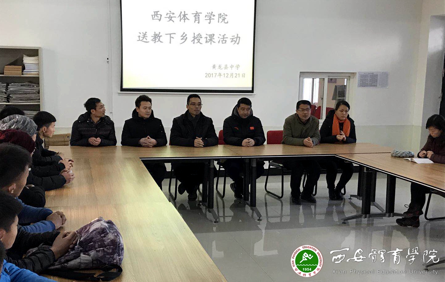 本网讯 为切实贯彻陕西省教工委、省教育厅、省扶贫办《关于实施百所高校结对帮扶百县助力全省脱贫攻坚工作的通知》的文件精神与要求,我院选派李山、郁成刚、朱海楠三位教师于2017年12月20—21日赴黄龙县中学为体育教师、体育特长生及学校特色体育开展送教下乡帮扶活动。