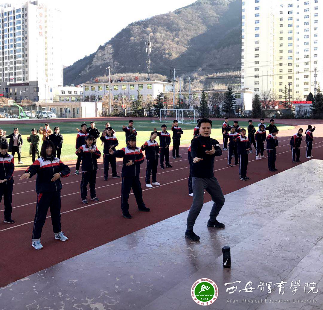 我院朱海楠老师带领黄龙县中学高一、高二学生练习“云手”技术