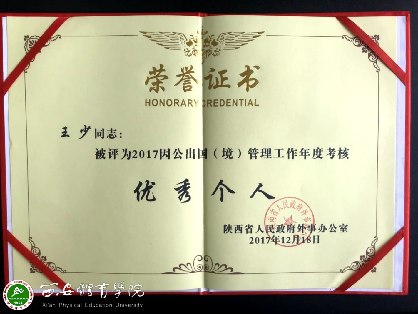 本网讯 12月22日,陕西省人民政府外办在机关会议室召开了2017年全省因公出国(境)管理工作会议。会上,我院荣获全省出国(境)管理工作先进单位,党政办公室国际交流中心王少同志荣获全省因公出国(境)管理先进个人。