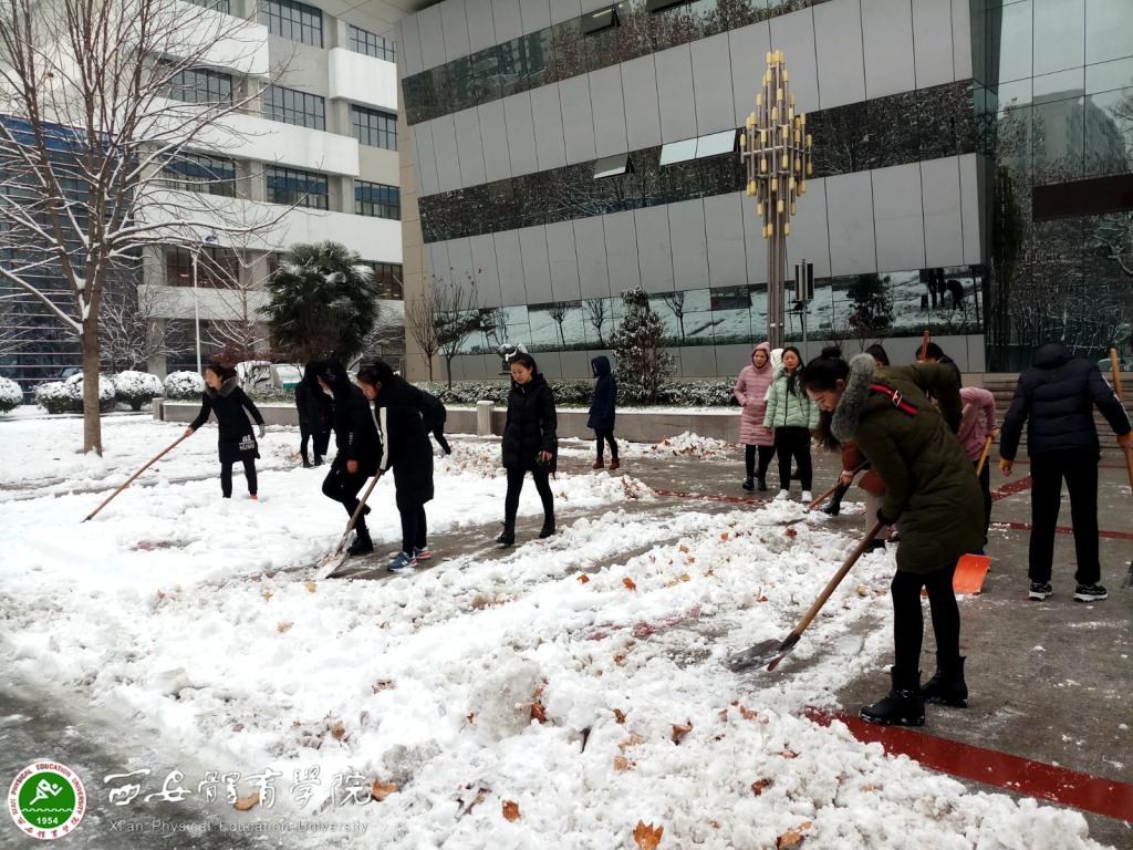 持续的降雪导致校园内有较厚的积雪、积冰。1月3日下午6点开始,保洁绿化中心按照积雪应急预案进行除雪、防滑工作。为保障学院整体秩序,后勤管理处(集团)全体干部、职工行动迅速,积极清除积雪积冰,学院领导、团委、研究生部、体育教育系学生、艺术系学生、物业部也自发行动起来,加入到清扫积雪和除冰的队伍中。通过扫雪除冰,我院主要道路、教学区、行政办公区、学生宿舍、家属区等重点区域恢复畅通。