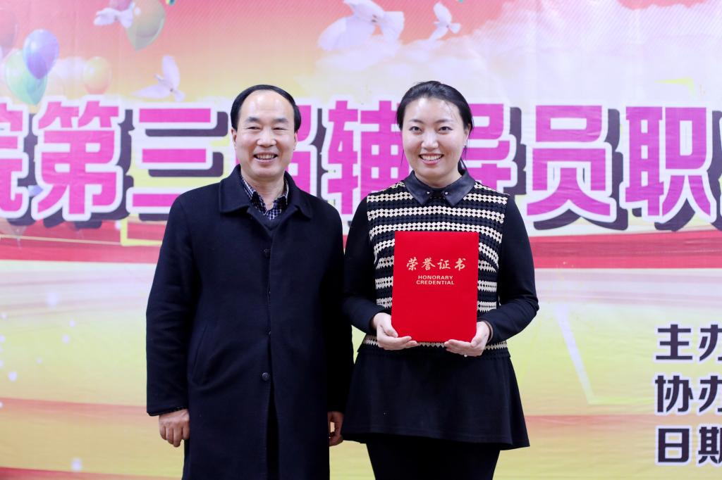 黄道峻、朱元利为获奖系部颁发优秀组织奖