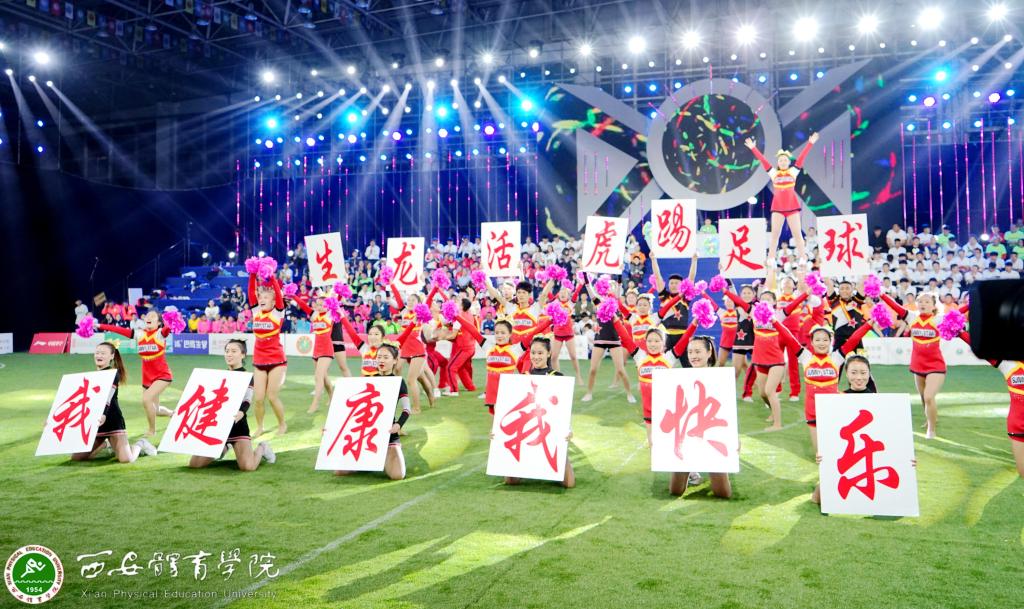 22日晚7点,陕西省教育厅副厅长王海波、陕西省体育局副局长邹军、学院党委书记黄道峻、院长朱元利、党委副书记刘子实、纪委书记赵军、陕西省教育厅体卫艺处调研员李梁等领导出席本次决赛。我院体育艺术系啦啦操和艺术体操专业的学生,通过热情、精湛的表演,推动了比赛氛围,展现了我院的教育特色。