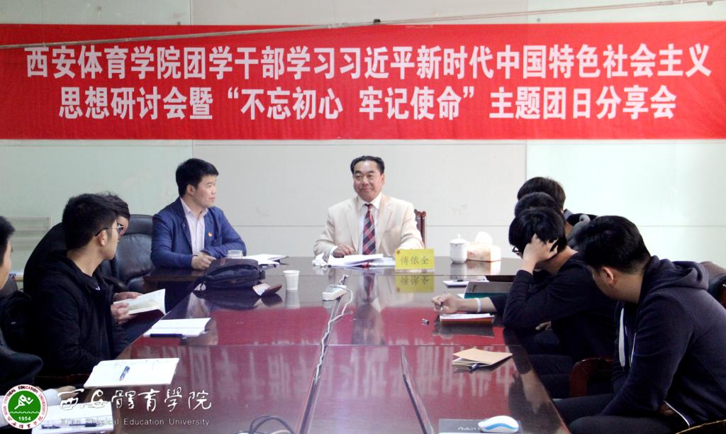 本网讯 4月25日上午,院团委在国际交流中心会议室举办了学习习近平新时代中国特色社会主义思想研讨会暨“不忘初心牢记使命”交流座谈会。相关系部团总支书记、学生代表共60余人参加了座谈。团委副书记熊辉主持本次会议。