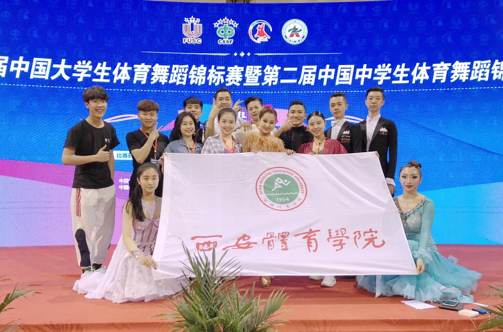 在我院教师刘伟校的带领下,我院代表队在专业院校A组中获得4项冠军,3项亚军,4项季军的优异成绩。其中方鑫、侯梦倩获得大学专业院校A组十项全能冠军、大学专业院校A组五项季军;杨政、王星月获得大学生专业院校A组单项斗牛亚军;黄展鹏、孙瑶婷获得大学专业院校A组单项斗牛冠军、大学专业院校A组单项伦巴季军;郭金磊、杨春雨柳获得大学生专业院校A组桑巴季军;雒文斌、吴迪获得大学专业院校A组单项恰恰冠军;王子豪、叶雨倩获得大学专业院校A组单项牛仔冠军、大学专业院校A组单项桑巴亚军、大学专业院校A组拉丁四项季军;李瑞豪、纪安琪获得大学专业院校A组牛仔亚军。