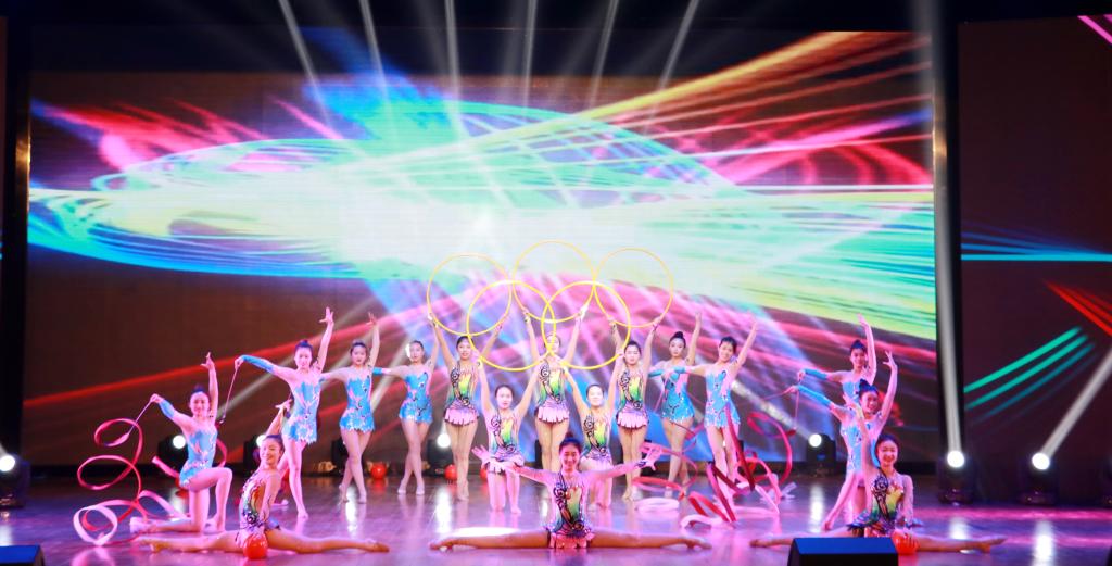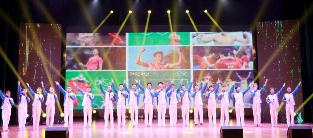 晚会还进行了一系列精彩的文艺表演:大合唱《光荣啊!中国共青团》,慷慨激昂,催人奋进;啦啦操青春洋溢、活力四射;体育舞蹈《变奏》,表演者通过舒展奔放的动作,展现了蝴蝶展翅般蹁跹的舞姿;诗朗诵《冠军,我们青春的证明》,掀起了一曲恢宏大气的磅礴之歌;街舞表演通过独特的动作与帅气的律动,扣人心弦;花式篮球《freestyle》动感十足,热爆全场。