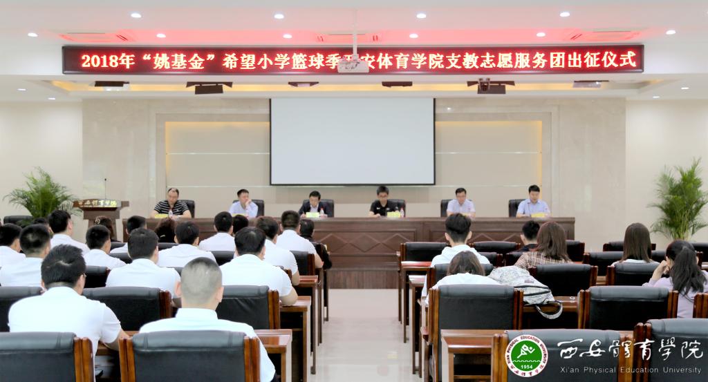 2018年“姚基金”希望小学篮球季万象城allwincity官网支教志愿者服务团出征仪式在我院2号办公综合楼六楼报告厅举行