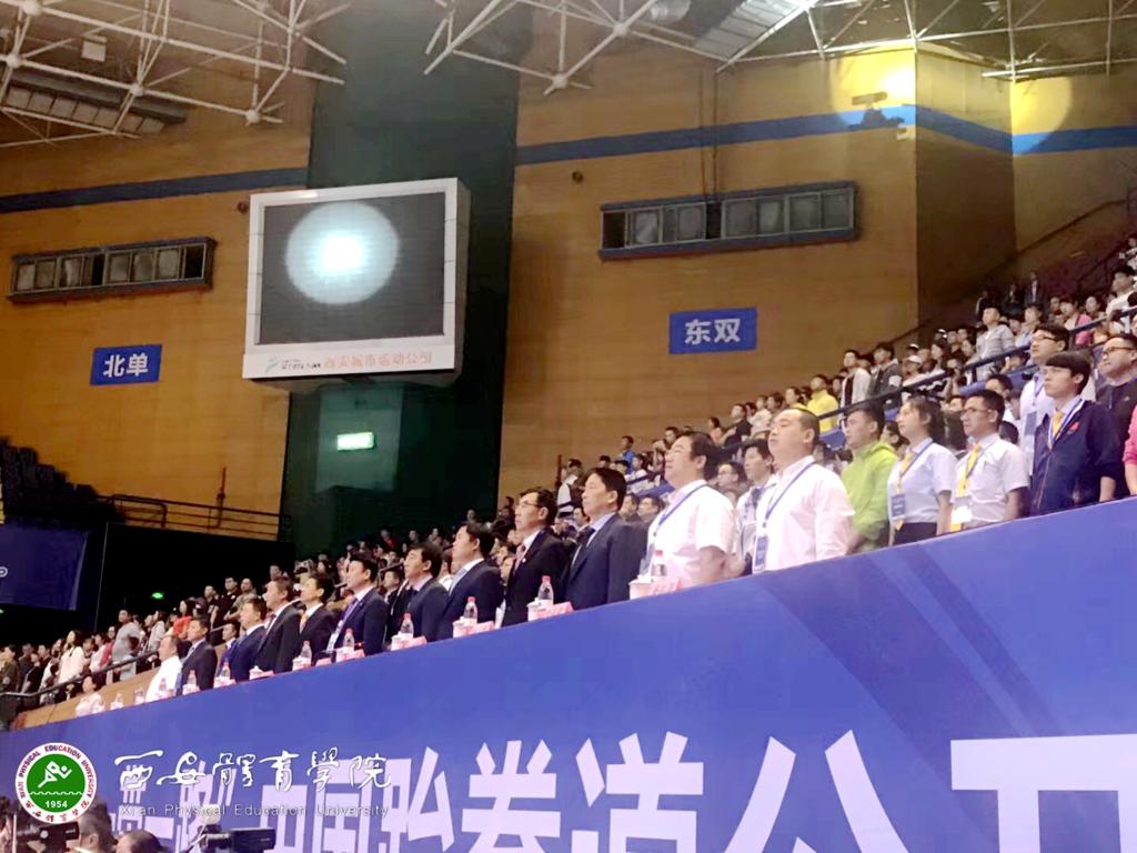本网讯 6月8日至11日,2018“一带一路”中国跆拳道公开赛在西安城市运动公园举行,8日开幕式上,出席领导有亚洲跆拳道联合会裁判委员会主席李载凤、中国跆拳道协会主席管健民、陕西省体育局局长王勇、副局长邹军、我院院长朱元利、陕西省拳击跆拳道运动管理中心书记、我院竞技体校校长张文军及各成员单位负责人。