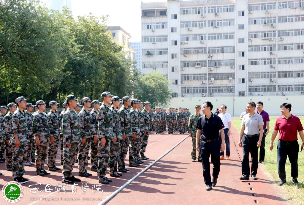 本网讯 9月11日上午,院长朱元利,副院长文立新一行到田径场实地查看军训情况并慰问参训教官及学生。相关职能部门负责人陪同。