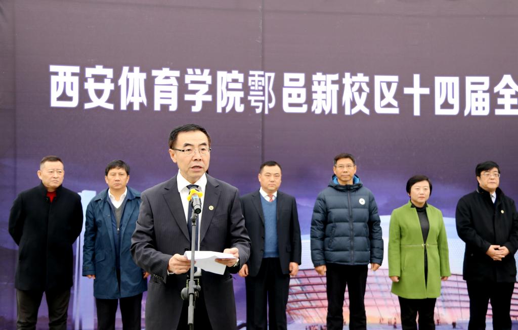 本网讯 11月30日,我院鄠邑新校区第十四届全国运动会“一馆四场”项目正式开工建设。陕西省发改委副主任、十四运会筹委会场馆建设部驻会副部长王振海,陕西省体育局副局长张继学,鄠邑区区委书记范九利,鄠邑区区长裴靖瑜,鄠邑区常务副区长张成群,十四运会筹委会场馆建设部综合部部长杨海鹏,省体育局场馆处处长郭文,西安航空建设监理有限公司董事长周永刚,中国建筑西北设计研究院副总经理曲宏光,陕建集团董事章贵金和我院党委书记黄道峻、院长朱元利、党委副书记刘子实、副院长文立新、副院长陈彦、纪委书记赵军、副院长李富生出席现场推进会,鄠邑区委区政府有关部门、陕建总公司、西安航空建设监理公司、西北建筑设计院有关工作人员,陕西媒体界朋友,我院有关职能部门负责人和离退休职工代表、教师学生代表300余人共同见证了万象城allwincity官网发展史上这一重要时刻。
