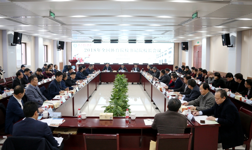 本网讯 2018年全国体育院校书记校长会议于12月14日在南京体育学院举行。国家体育总局副局长李颖川、科教司司长李业武、科教司副司长曹景伟和全国15所体育院校的党政主要领导参加了会议。李业武主持会议。