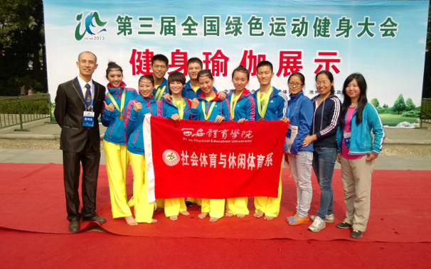 2013年我院健身瑜伽代表队在第三届全国绿色运动建设大会健身瑜伽比赛中获得集体组总冠军