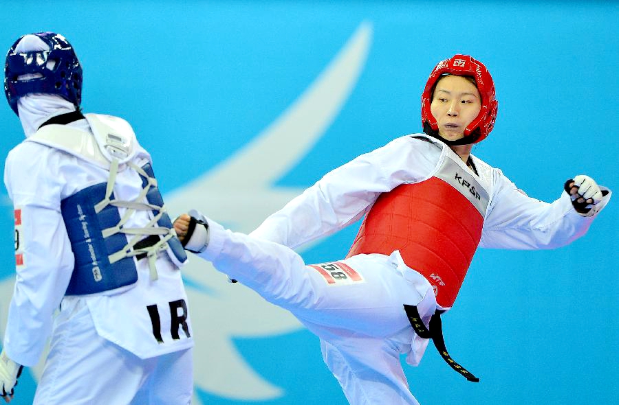 李东华在仁川亚运会上获得跆拳道女子73公斤以上级比赛冠军