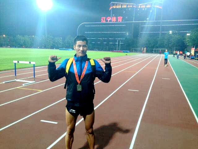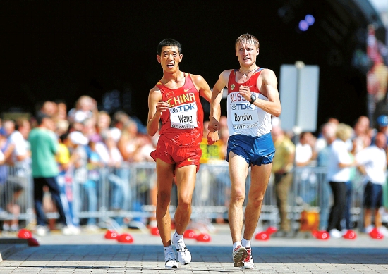 王浩在2009年田径世锦赛上奋勇拼搏并获冠军