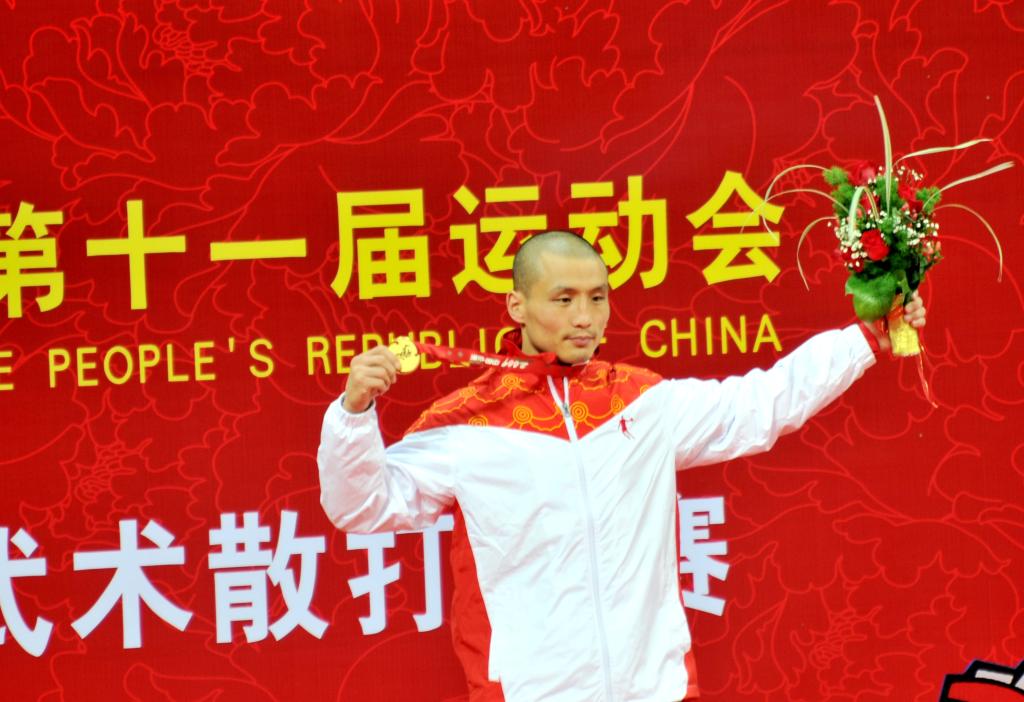 巴特尔在第十一届全国运动会上获得男子散打77.5公斤级比赛冠军
