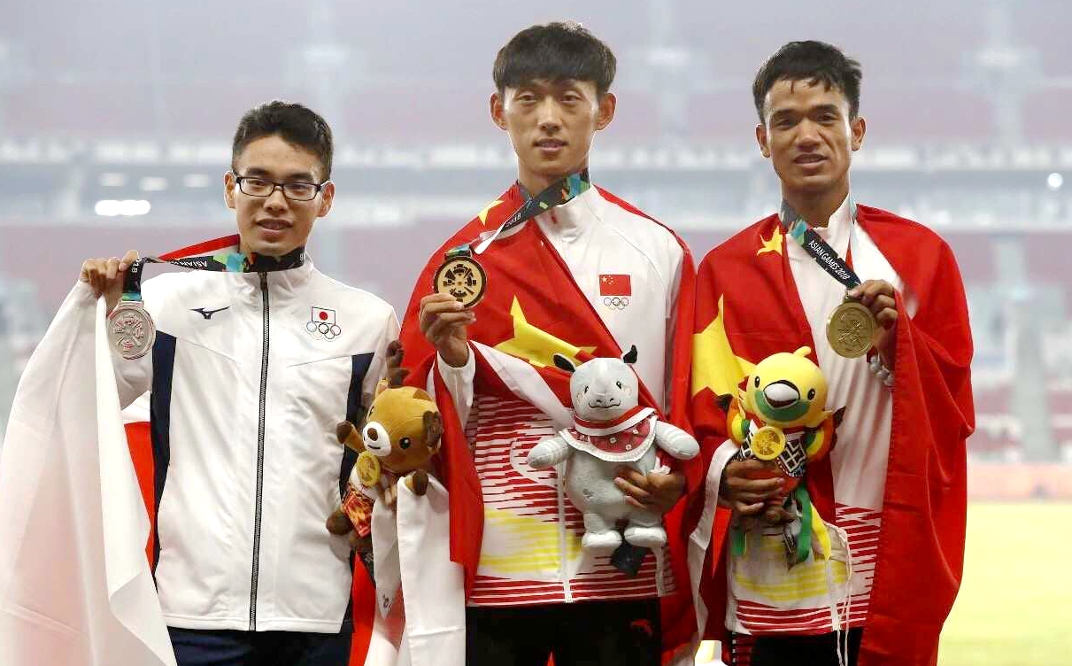王凯华(中) 2018年第18届亚运会竞走冠军