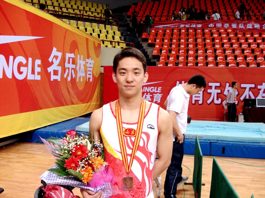宁文龙在2007年全国蹦床锦标赛上代表山东省获得男子团体第一名