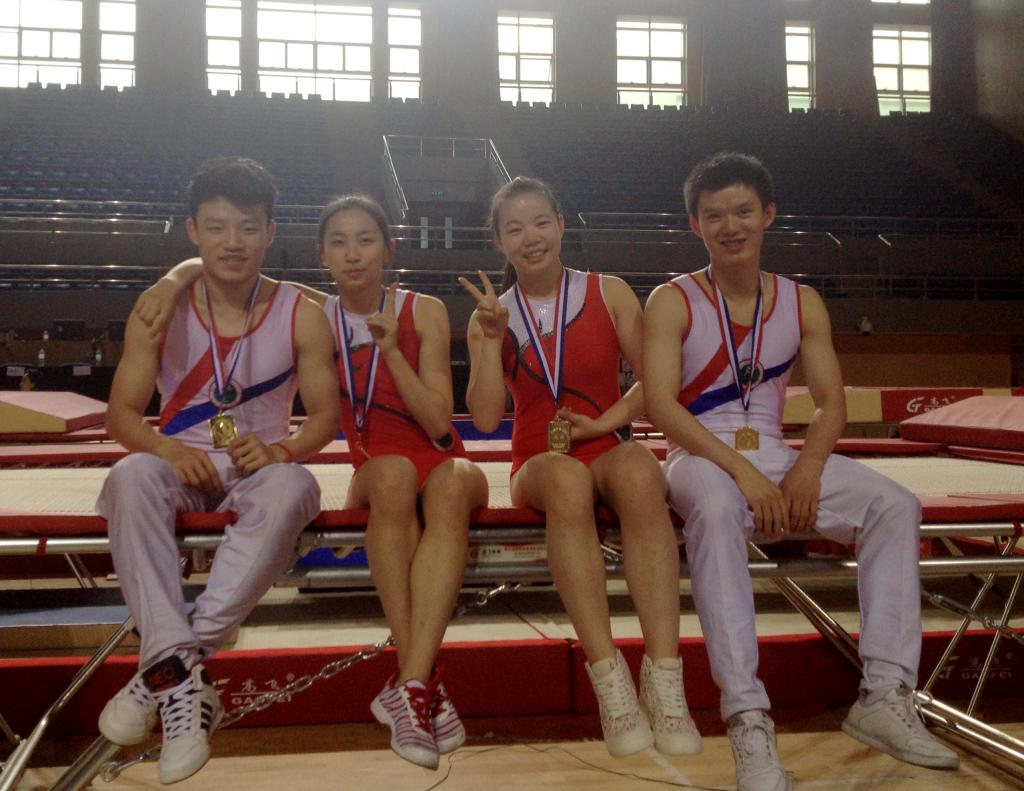 张文愿、张世豪、胡佳媛、吴泽莹分别获得2014年全国蹦床冠军赛男子女子网上双人同步冠军