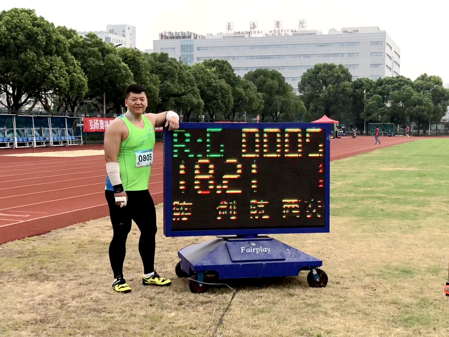 陈剑在2018年全国体育院校田径锦标赛中以破纪录的18.21米成绩获得铅球男子甲组(注册组)金牌