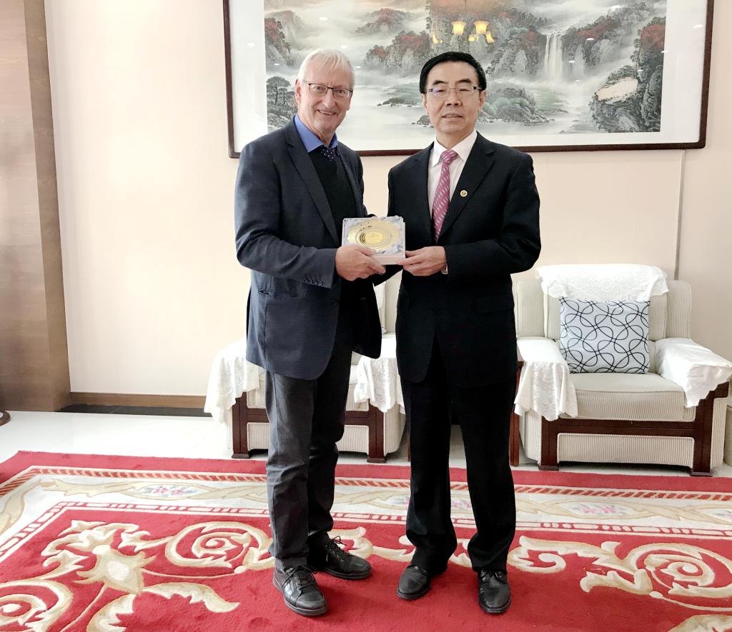 院长朱元利向丹麦葛莱体育运动教育学院校长Finn Berggre赠送纪念品