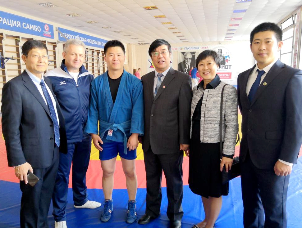 我院代表团访问俄罗斯国立体育、青年与旅游大学并与该校谢尔盖·耶夫盖耶维奇师生合影