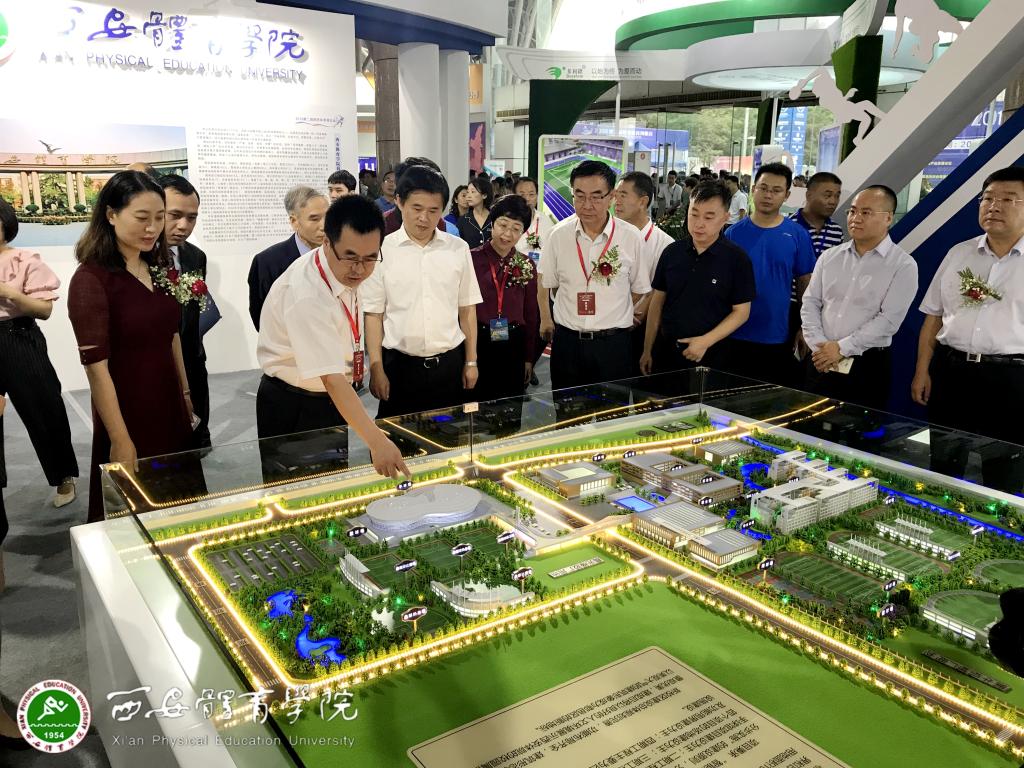 2018年8月17日,新校区规划参展2018年第二届陕万象城育博览会,省体育局局长王勇(左五)莅临现场